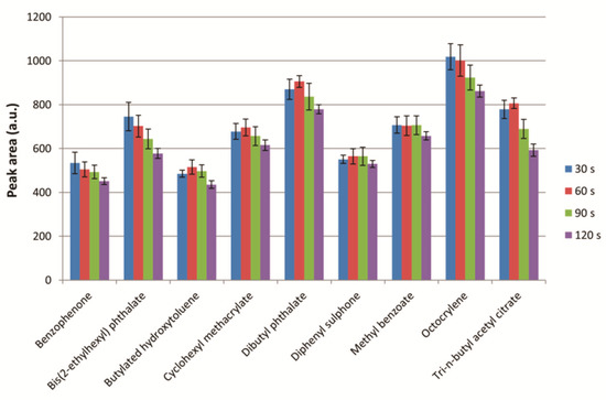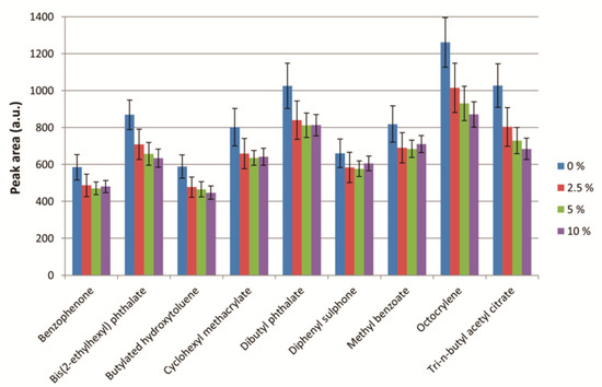 | Etocrylene | 0.998 | 93 ± 6 | 97 ± 6 | 104 ± 9 | 6.5 | 6.0 | 8.5 |