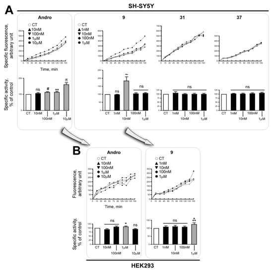 4.10. β-Secretase Fluorimetric Assay on Cell Homogenates