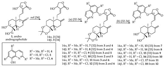- Kandanur, S.G.S.; Tamang, N.; Golakoti, N.R.; Nanduri, S. Andrographolide: A natural product template for the generation of structurally and biologically diverse diterpenes. Eur. J. Med. Chem. 2019, 176, 513–533. [Google Scholar] [CrossRef]