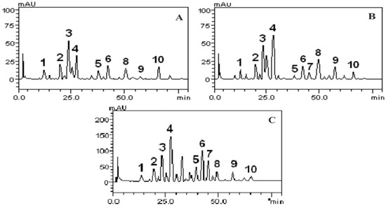3.3.2. Phenolics and Flavonoids Compounds by HPLC/DAD