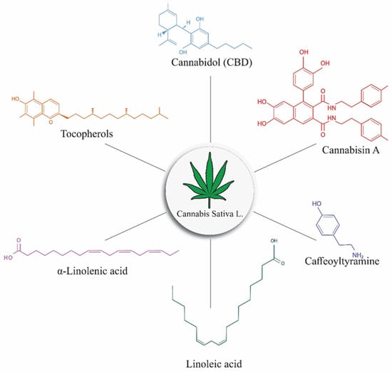Chicago/Turabian StyleIftikhar, Amna, Umaima Zafar, Waqar Ahmed, Muhammad Asim Shabbir, Aysha Sameen, Amna Sahar, Zuhaib F. Bhat, Przemysław Łukasz Kowalczewski, Maciej Jarzębski, and Rana Muhammad Aadil. 2021. "Applications of Cannabis Sativa L. in Food and Its Therapeutic Potential: From a Prohibited Drug to a Nutritional Supplement" Molecules 26, no. 24: 7699. https://doi.org/10.3390/molecules26247699