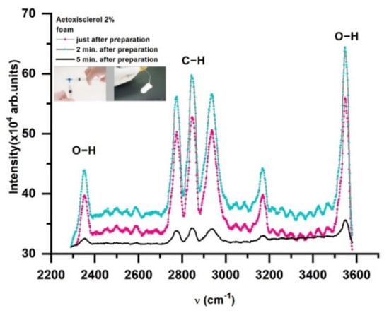 The influence of foam stability on the Raman spectra of Aetoxisclerol sclerosant drug.