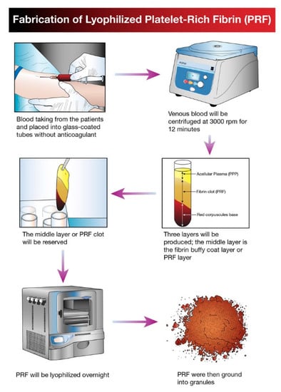 - Liu, Z.; Jin, H.; Xie, Q.; Jiang, Z.; Guo, S.; Li, Y.; Zhang, B. Controlled Release Strategies for the Combination of Fresh and Lyophilized Platelet-Rich Fibrin on Bone Tissue Regeneration. BioMed Res. Int. 2019, 2019, 4923767. [Google Scholar] [CrossRef]