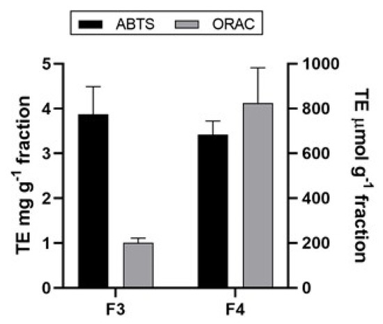 | Fraction | mg GAE g−1 of Dry Fraction |