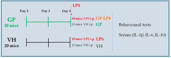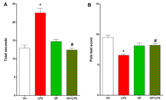 3.2. GP Restores Motor Performance after Treatment with LPS