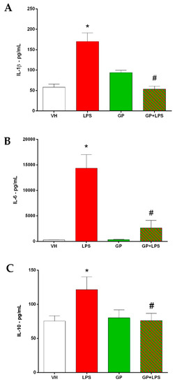 3.3. GP Decreases the Inflammatory Cytokines after Treatment with LPS