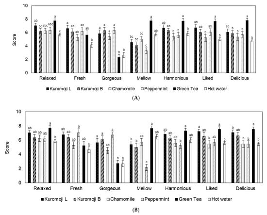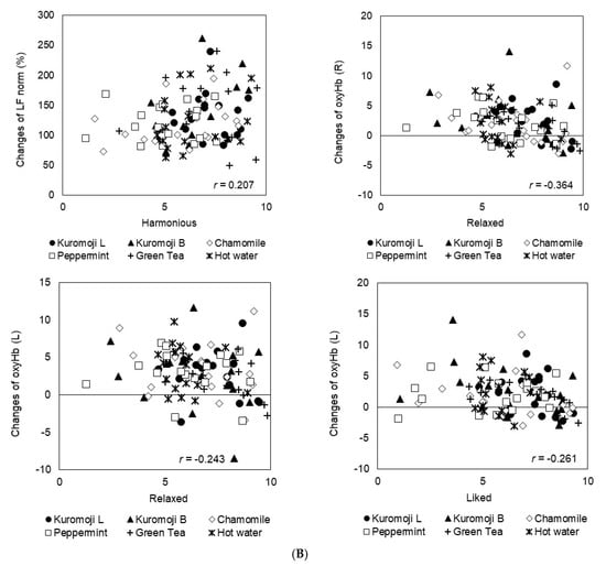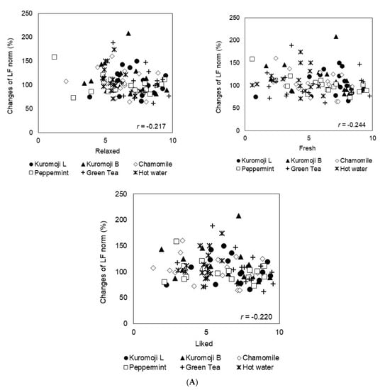 - Inoue, N.; Kuroda, K.; Sugimoto, A.; Kakuda, T.; Fushiki, T. Autonomic Nervous Responses According to Preference for the Odor of Jasmine Tea. Biosci. Biotechnol. Biochem. 2003, 67, 1206–1214. [Google Scholar] [CrossRef]