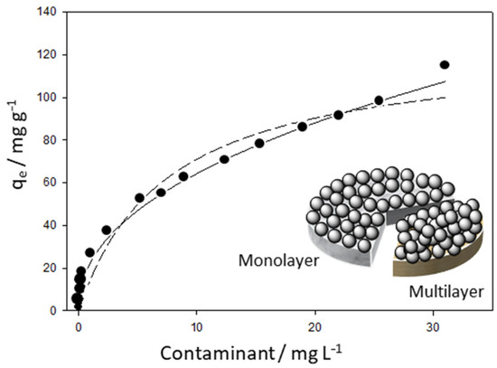 Moreover, the particle size of the adsorbents has a significant effect on the final solute concentration, and hence on the overall performance of the adsorption process. Larger particle sizes reduce the uptake due to the lower specific surface area. Thus, an increase in surface area of adsorbent results in new active sites formed, thus allowing more binding of solute molecules [124]. Piccin et al. [120] investigated the effects of particle size, surface area and pore volume of chitosan on the adsorption of FD&C Red 40. The particle sizes used were 0.10, 0.18 and 0.26 mm, with surface areas of 4.2, 3.4 and 1.6 m2 g−1, respectively. The results showed that an increase in the surface area and a decrease in particle size doubled the adsorption capacity. Dotto et al. [57] evaluated chitin and chitosan as adsorbents for tartrazine dye. They verified that chitosan showed better adsorbent properties than chitin due to its higher deacetylation degree and higher surface area, pore volume and pore size. These characteristics are particularly important for adsorption applications because it provides access to large pollutant molecules, enabling them to reach the internal adsorption sites.