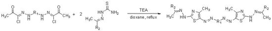 - Gomha, S.M.; Farghaly, T.A.; Sayed, A.R. Design, Synthesis, and Characterization of Some New bis -thiazoles. J. Heterocycl. Chem. 2017, 54, 1537–1542. [Google Scholar] [CrossRef]