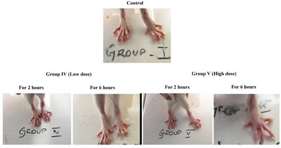 3.2.1. Acute Toxicity Analysis in Albino Mice