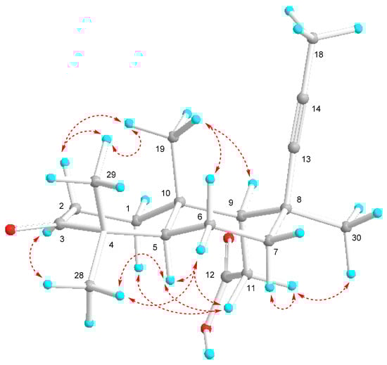 - Dung, D.T.; Hang, D.T.T.; Nhiem, N.X.; Quang, T.H.; Tai, B.H.; Yen, P.H.; Hoai, N.T.; Thung, D.C.; Minh, C.V.; Kiem, P.V. Rhabdaprovidines D–G, four new 6,6,5-tricyclic terpenoids from the Vietnamese sponge Rhabdastrella providentiae. Nat. Prod. Commun. 2018, 13, 1251–1254. [Google Scholar] [CrossRef]