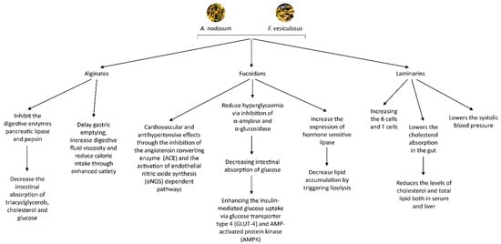 - Derosa, G.; Pascuzzo, M.D.; D’angelo, A.; Maffioli, P. Ascophyllum nodosum, Fucus vesiculosus and chromium picolinate nutraceutical composition can help to treat type 2 diabetic patients. Diabetes Metab. Syndr. Obes. Targets Ther. 2019, 12, 1861. [Google Scholar] [CrossRef]