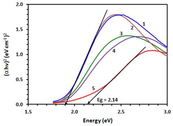 2.2. UV–Visible Absorption Spectra and Band Gap Energy