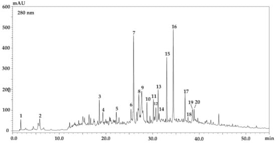 Phenolic profile of the ethyl acetate extract of G. A. at 280 nm.