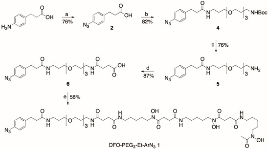 2.1. Synthesis of DFO-PEG3-Et-ArN3, (1)