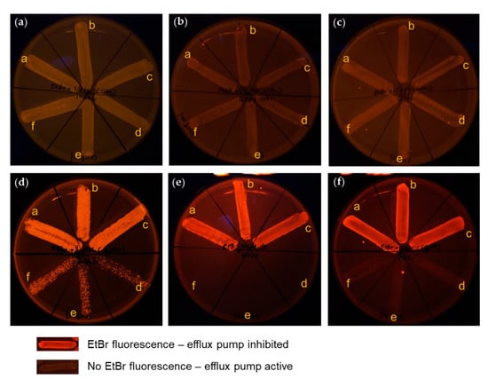 4.9. Phenotypic Efflux Pump Activity and Efflux Pump Inhibition Detection by EtBr-Cartwheel Assay