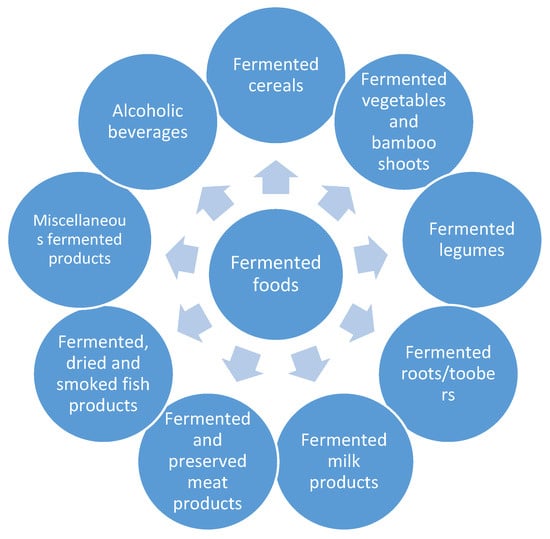 Types of fermented foods [8,9].