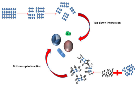 Nano (n) is a prefix that is used to describe 10−9 of any parameter. For example, the nucleus diameter of lead (Pb) is ~0.35 nm. The idea behind nanotechnology was presented by the famous material scientist Richard, P. Feynman in his seminal lecture entitled There’s Plenty of Room at the Bottom in the December 1959 Meeting of the American Physical Society [1]. From that time onwards, there have been numerous advancements in material science that have exhibited Feynman’s vision of controlling material properties at the atomic scale. In 1974, Norio Taniguchi, an educator at the Tokyo University of Science (Japan), coined the term nanotechnology to depict high-accuracy and ultra-fine measurements. Taniguchi presented a top-down theory by foreseeing upgrades and scaling down in coordinated circuits, optoelectronic tools, mechanical devices and personal computer (PC) memory chips [2]. Around 10 years later, K. Eric Drexler presented a bottom-up design approach when he examined the formation of bigger particles from their atomic and sub-atomic scales as another possible direction of nanotechnology [3].