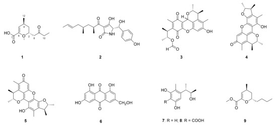 Chemical structures of compounds 1–9.