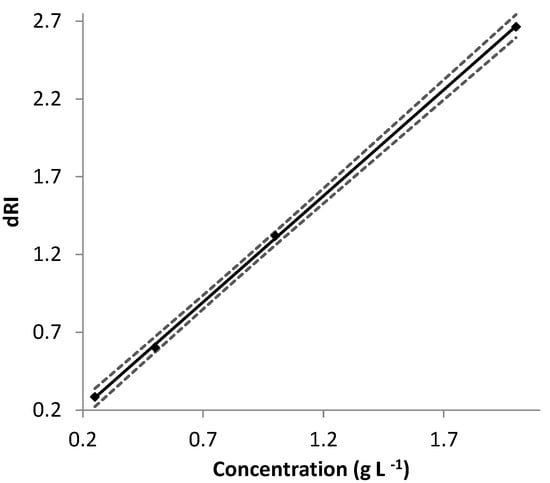 30], particularly for polysaccharides such as dextran and pullulan, indicated ∂n/∂c values in aqueous solution ranging between 0.14 and 0.15 mL g