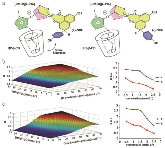 - Wang, S.S.; Han, C.; Wang, S.S.; Bai, L.J.; Li, S.S.; Luo, J.G.; Kong, L. Development of a High Speed Counter-current Chromatography System with CU(II)-Chiral Ionic Liquid Complexes and Hydroxypropyl-β-Cyclodextrin as Dual Chiral Selectors for Enantioseparation of Naringenin. J. Chromatogr. A 2016, 1471, 155–163. [Google Scholar] [CrossRef]