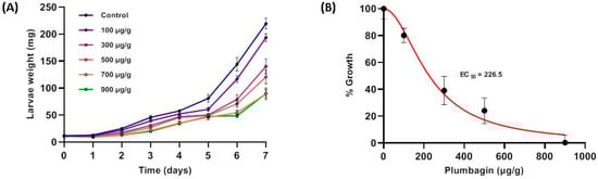2.3. Growth-Inhibiting and Larvicidal Activities of Plumbagin