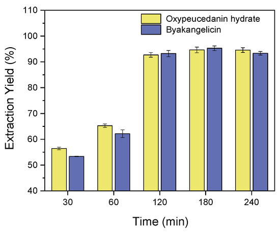Effect of time on the extraction of oxypeucedanin hydrate and byakangelicin.
