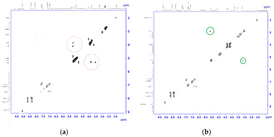 1H–1H 2D ROSY NMR spectra of the complexes Co(III)P2-(L2) (a) and Co(III)P2-(L3) (b) in D2O/H2O.