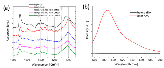 Chicago/Turabian StyleHe, Siyang, and Guido Kickelbick. 2021. "Reversible Diels–Alder Reactions with a Fluorescent Dye on the Surface of Magnetite Nanoparticles" Molecules 26, no. 4: 877. https://doi.org/10.3390/molecules26040877