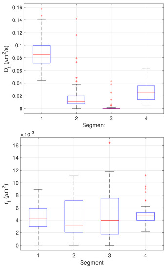 - Michalet, X.; Berglund, A.J. Optimal diffusion coefficient estimation in single-particle tracking. Phys. Rev. E 2012, 85, 61916. [Google Scholar] [CrossRef] [PubMed]