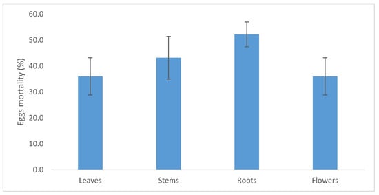 3.6. Ovicidal Activity of C. procera Extracts on Cadra Cautella