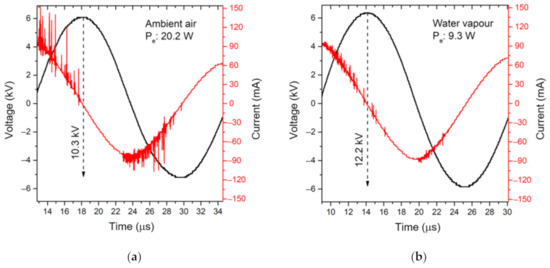- Procházka, V.; Tučeková, Z.; Dvorák, P.; Kováčik, D.; Slavíček, P.; Zahoranová, A.; Voráč, J. Coplanar surface barrier discharge ignited in water vapor—A selective source of OH radicals proved by (TA)LIF measurement. Plasma Sour. Sci. Technol. 2018, 27, 015001. [Google Scholar] [CrossRef]