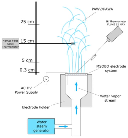 - Malik, M.A.; Schoenbach, K.H. New approach for sustaining energetic, efficient and scalable non-equilibrium plasma in water vapours at atmospheric pressure. J. Phys. D Appl. Phys. 2012, 45, 132001. [Google Scholar] [CrossRef]
