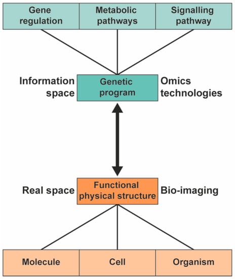In systems biology, the information from the genetic program is integrated with information from functional physical structures to provide a comprehensive model of plants.