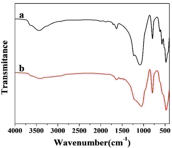 FT-IR spectra of (>a) β-zeolite and (b) EDA@β-zeolite.