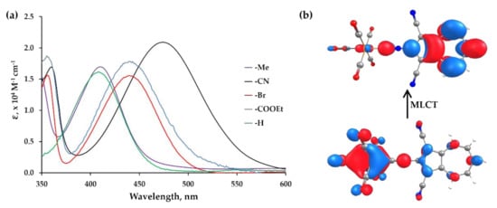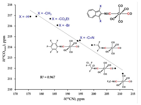 - Johnston, R.F. Effects of Multiple Substituents on the Physical Properties of Pentacarbonylarylisocyanidechromium Com-pounds. J. Coord. Chem. 1994, 31, 57–66. [Google Scholar] [CrossRef]