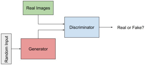 - Goodfellow, I.J.; Pouget-Abadie, J.; Mirza, M.; Xu, B.; Warde-Farley, D.; Ozair, S.; Courville, A.C.; Bengio, Y. Generative adversarial networks. Commun ACM 2020, 63, 139–144. [Google Scholar] [CrossRef]