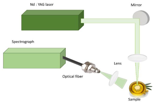 Laser-Induced Breakdown Spectroscopy (LIBS) is a laser-based technique of atomic emission spectroscopy (AES) that utilizes a laser-generated plasma as the vaporization, atomization, and excitation source. It should be noted that LIBS is regarded as an attractive technique and its popularity has considerably increased over the past few years, mainly due to its simplicity, the immediate delivery of qualitative and quantitative elemental analysis, and its ability to analyze all states of matter (i.e., solid, liquid, and gas) [19,20,21]. According to this technique, a focused laser beam induces a dielectric breakdown on a sample’s surface, leading to plasma formation. Due to the excited species present in the plasma (i.e., atoms, ions, etc.), emission of radiation occurs. The collection of the emitted radiation and its subsequent spectral analysis can provide valuable information about the elemental composition of the sample [22,23,24]. Because of the unique features exhibited by LIBS, that is, the absence of any time-consuming sample preparation or pre-treatment, the use of a very small amount of sample, the ability to perform in real time, in situ, and/or remotely, as well as its quasi-non-destructive character, the number of LIBS applications has dramatically increased over the last few years [25,26,27,28], including, more recently, its application for food analysis [29,30,31,32], and the analysis of olive oils as well [33,34,35].