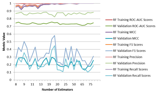 | RF classifier myfeats (I) | AUC 0.9999 ± 0.0009; MCC 0.9951 ± 0.0153; F1 0.9963 ± 0.0153; Prec. 0.9976 ± 0.011; Recall 0.9951 ± 0.0198 | AUC 0.7564 ± 0.0105; MCC 0.297435 ± 0.0478; F1 0.5805 ± 0.1041 (3 × 106 epochs); Prec. 0.8856 ± 0.0148(1.5 × 105 epochs); Recall 0.4481 ± 0.0866 (3 × 106 epochs) | eightfold cross-validation, (19 runs, ‘sqrt’), 2.25 × 106 epochs |