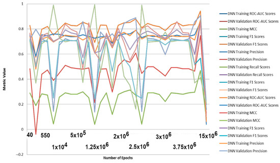 | DNN classifier myfeats (II) | AUC 0.9424 ± 0.0655; MCC 0.7472 ± 0.1283; F1 0.8608 ± 0.0754; Prec. 0.8732 ± 0.063; Recall 0.8585 ± 0.1092(4.5 × 106 epochs) | AUC 0.8686 ± 0.0398; MCC 0.4685 ± 0.0892; F1 0.7943 ± 0.1617 (4.5 × 106 epochs); Prec. 0.9052 ± 0.1988; Recall 0.8585 ± 0.2054 (4.5 × 106 epochs) | Learning rate: 0.00047, weight decay penalty: 2.637 × 106, 2.5 × 106 epochs |