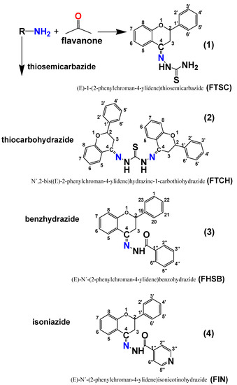 The racemic flavanone, thiosemicarbazide, thiocarbohydrazide, benzhydrazide, isoniazid, concentrated H2SO4, chloroform (CHCl3), ethanol (CH3CH2OH), and all other compounds were purchased from the Sigma-Aldrich Co. (Poznań, Poland). All reagents were of analytical quality and were used without further purification.