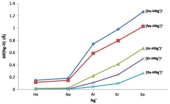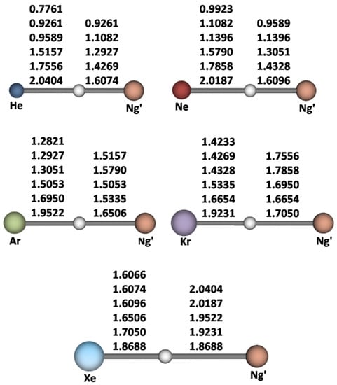 4.2. The Heteronuclear (Ng-H-Ng’)+ (Ng = He-Xe)