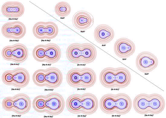 4.1. The NgH+ and the Homonuclear (Ng-H-Ng)+ (Ng = He-Xe)