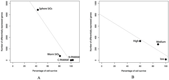 2.1. The Association between the Number of Differentially Expressed Genes Identified from Toxicogenomics Studies and Cell Survival