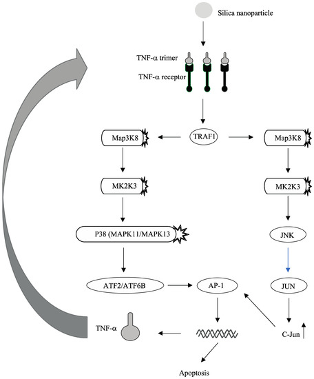 2.2. TNF Pathway Is the Most Enriched Pathway in the Up-Regulated Gene by Silica Nanoparticles