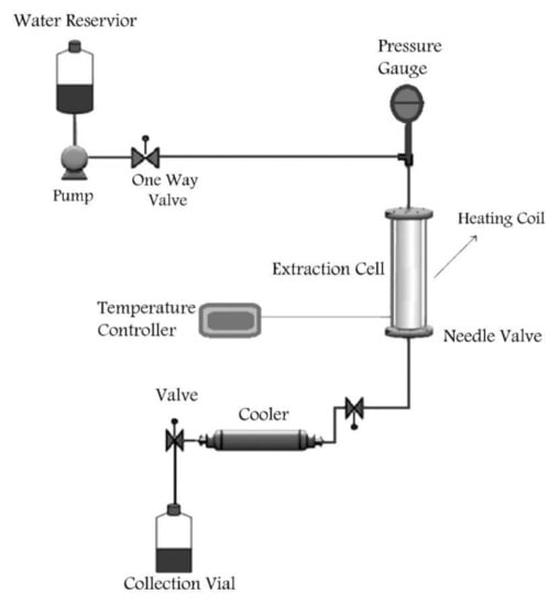 Schematic presentation of laboratory-built subcritical water extraction system.