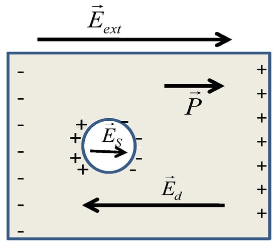 To obtain the effective permittivity for the doped PDLC, the following system is considered: the NPs-doped polymer matrix, LC droplets doped with NPs, as presented in