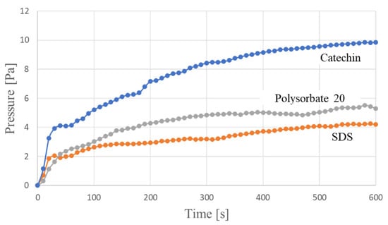 Figure 7 shows the generated pressure as a function of time when conditions other than the dispersant were the same.
