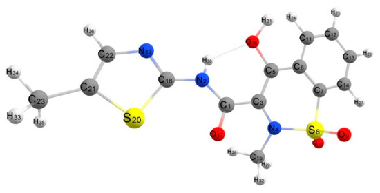 - Abu-Eittah, R.H.; Zordok, W.A. A molecular orbital treatment of piroxicam and its M(II)-complexes: The change of the drug configuration in a time of bond formation. J. Mol. Struct. 2010, 951, 14–20. [Google Scholar] [CrossRef]