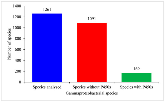 Recent studies from our laboratory focusing on bacterial species revealed that the lifestyle of an organism plays a key role in shaping P450 content vis à vis P450s helping microbes to adapt to ecological niches. However, these studies were limited to few groups of bacterial species belonging to the genera Streptomyces [49,50] and Mycobacterium [51,52,53] and from the phyla Cyanobacteria [54] and Firmicutes [55,56]. Furthermore, to date, a comparative analysis of P450s in the Gammaproteobacterial species has not been reported. Thus, this study is aimed at addressing these research gaps by not only performing genome data mining, annotation and phylogenetic analysis of P450s in Gammaproteobacterial species, but also performing comparative analysis with other bacterial species to see the impact of lifestyle shaping the P450 content in this group of bacteria, among others with respect to P450s’ involvement in secondary metabolism.
